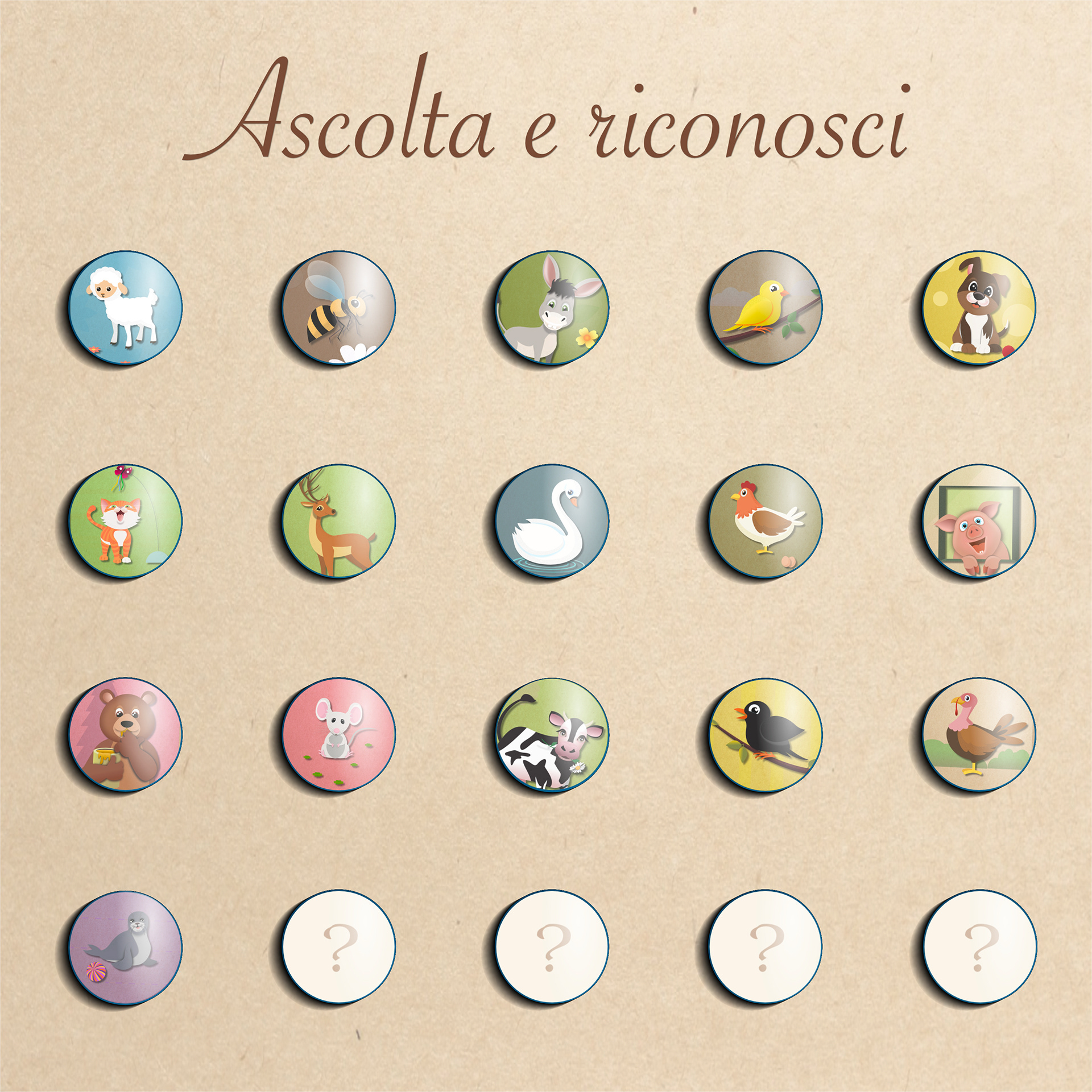 2) Pulsanti con le immagini degli animali per ascoltare i loro versi