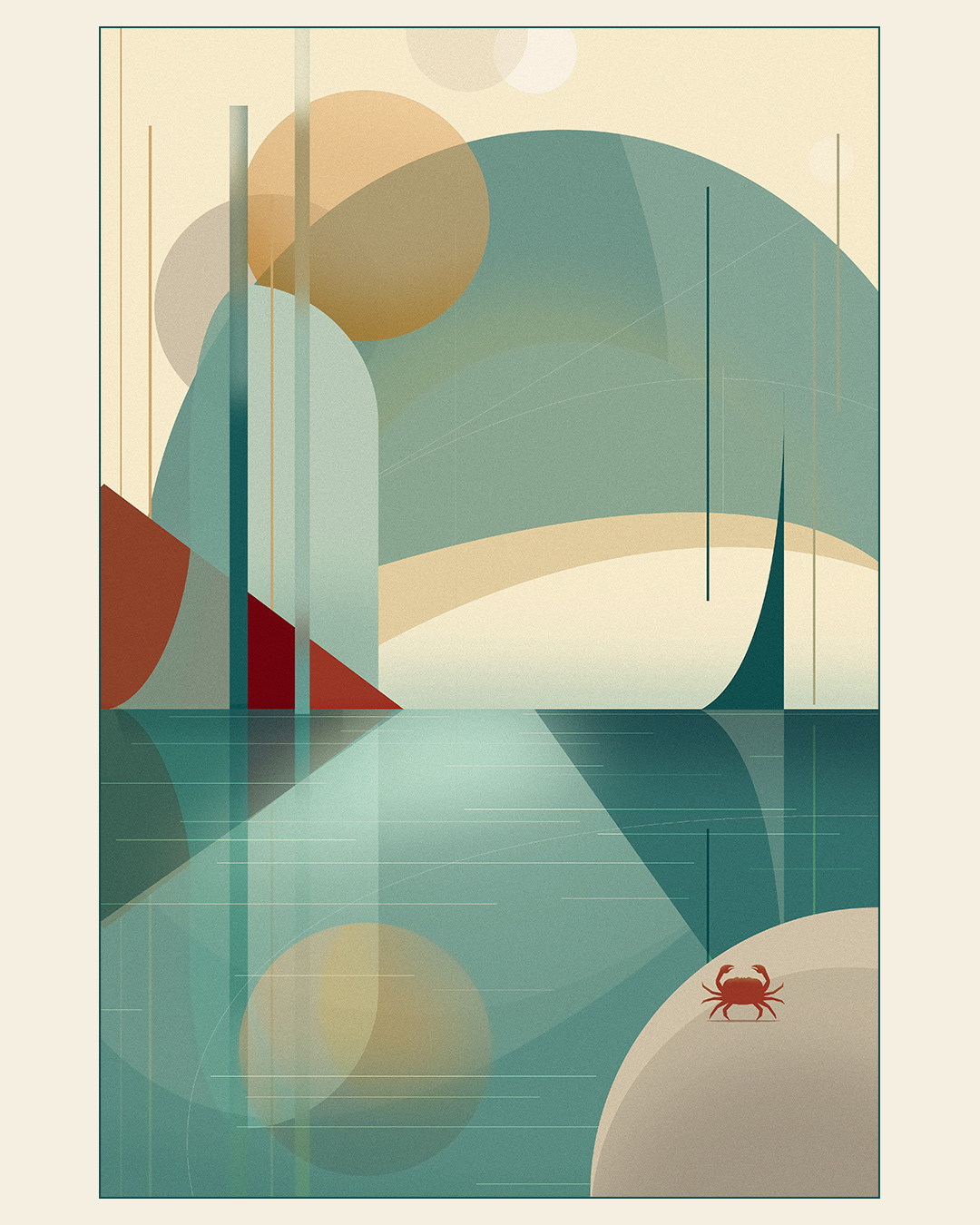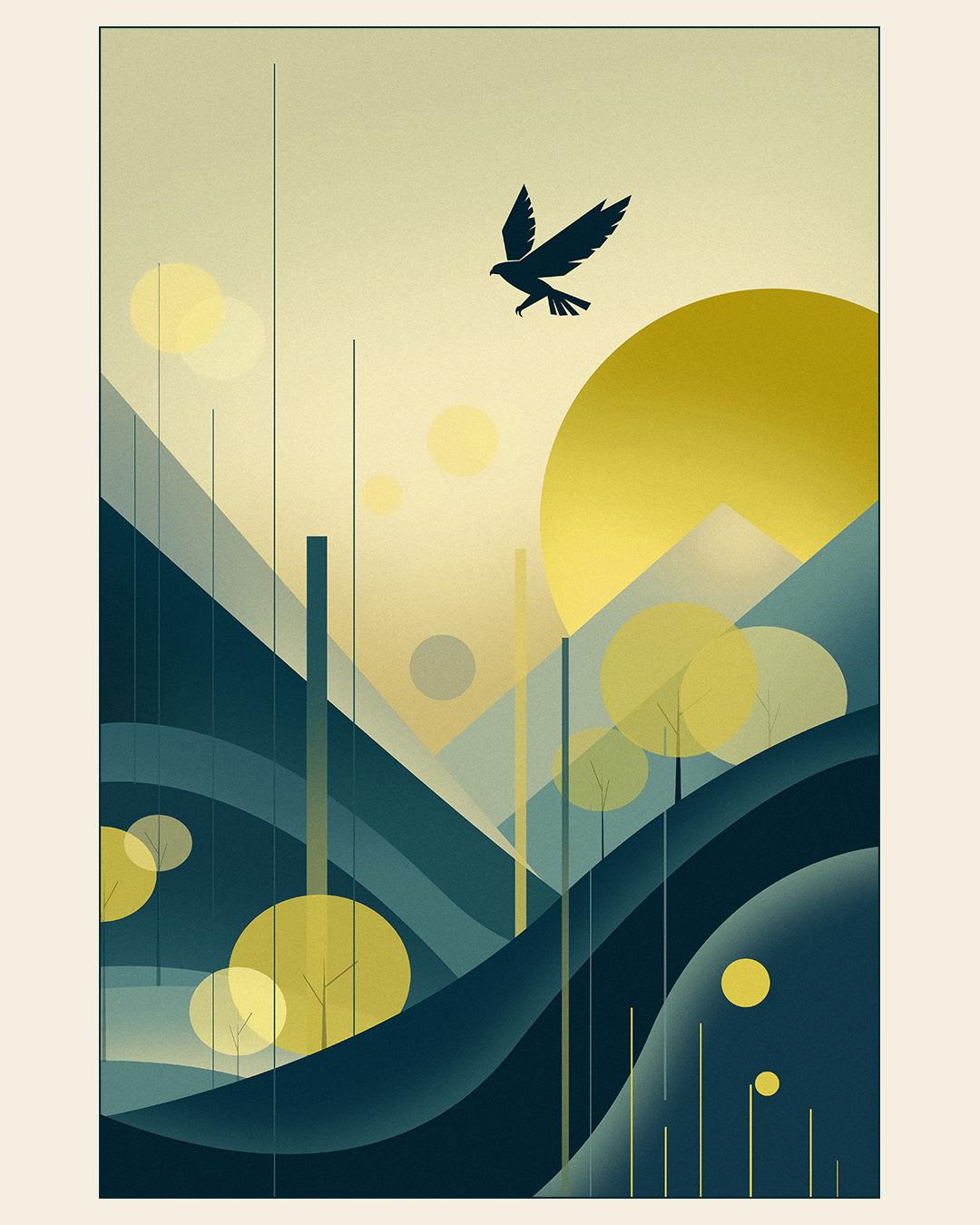 Foresta, montagna e mare prendono forma attraverso geometrie essenziali,